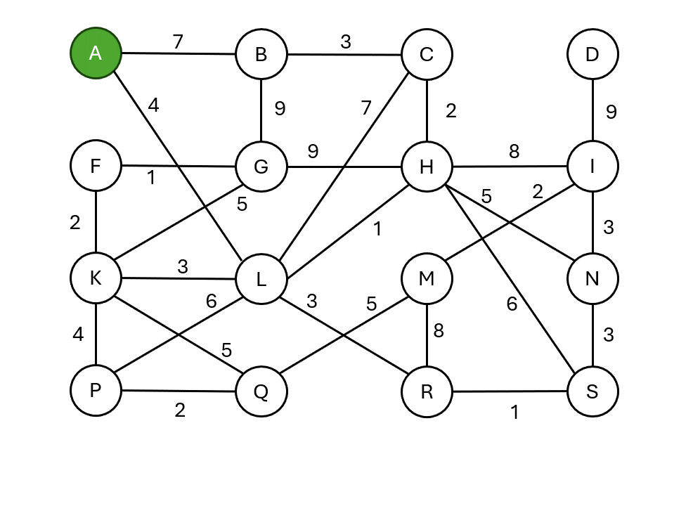 - Postupně vybírá nejlevnější hranu, která spojuje již vybranou množinu vrcholů se zbytkem grafu.