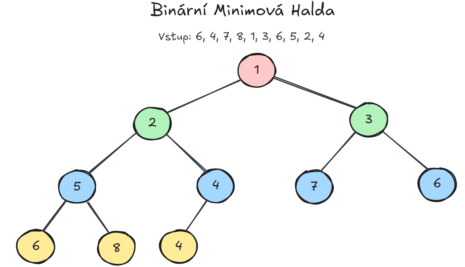 - u min-heapu platí, že hodnota rodiče je menší nebo rovna hodnotám potomků.